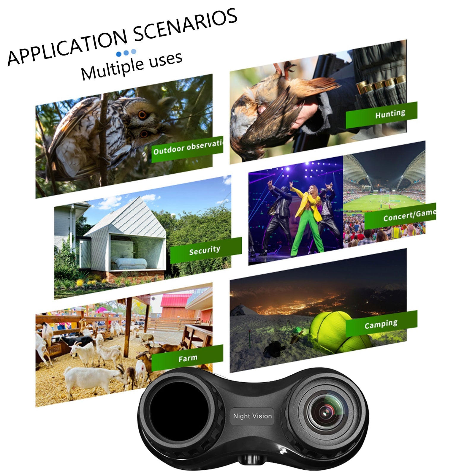Convenient to use: Powered by 2600MAH lithium battery (INCLUDED). This 4K HD digital infrared hunting binocular with night vision camera is portable, lightweight and comfortable to hold with bands. It is your best choice for hunting, camping and wildlife observation.